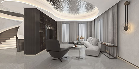 客廳最大的亮點(diǎn)是天花以波瀾水面的流動(dòng)藝術(shù)造型和旋轉景觀(guān)樓梯融為一體,統領(lǐng)空間的視覺(jué)焦點(diǎn)。在書(shū)房的設計上,伽馬先生一改普通書(shū)房厚重沉滯的缺陷,設以開(kāi)放輕松的閱讀場(chǎng)景。中西餐廳相互分離,又相 互融合,一反如 常的刻板印象。主臥以溫潤、柔和的米色賦予空間舒適、整潔的愜意,竹韻浮雕隔斷為空間增添一室清雅。